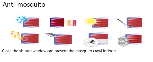 1. Adopting intensive shutter material,such as the double layer polyurethane material or double aluminum alloy profile with super hard polyurethane.