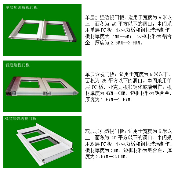 ![]() 商用透視門/工業(yè)透視門:是我廠引進(jìn)國外技術(shù),結(jié)合多年的實(shí)踐而開發(fā)研制的新一代產(chǎn)品。該產(chǎn)品廣泛應(yīng)用于汽車4S店、設(shè)備展示廳、消防用門,商場等場合。門體有鋁合金和聚碳酸酯玻璃組合而成,也可以選用亞克力板,或者鋼化玻璃。具有更高的透光性,使建筑外型更顯美觀。可以提供個性化設(shè)計方案:高透光性更有利于工作環(huán)境的改善。 產(chǎn)品特點(diǎn): ★優(yōu)質(zhì)鋁合金型材 ★高強(qiáng)度抗沖擊PC板 ★高速運(yùn)行電機(jī) ★安全防墜落裝置 ★顯示建筑高雅品位 工業(yè)透視門 一、門板 (1)門板結(jié)構(gòu)由中間透視窗,底部門板,頂部門板組成.底部門板為一塊或二塊聚胺脂發(fā)泡板.中間部分為鋁合合金邊框內(nèi)聚碳酯板組成的透視門板,頂部可根據(jù)實(shí)際需要選擇做成發(fā)泡板或者透視門板.透視窗的鋁質(zhì)框架及底部或頂部門板均可選用多種標(biāo)準(zhǔn)色彩. (2)也可做成整扇全透視門板 (3)鋁質(zhì)框架均可根據(jù)建筑物的選用多種標(biāo)準(zhǔn)色彩. (4)門板框架:我廠產(chǎn)品鋁型材,型材規(guī)格可由門板大小及抗風(fēng)性能來選擇相應(yīng)型號、尺寸、的牌號型材。并有多種防夾手功能的型材。 (5)透明板材:采用德國原料聚碳酸酯PC板,厚度為3mm-5mm兩種,可根據(jù)門寬及及窗寬來選擇.有優(yōu)良的抗紫外線功能,其抗沖擊力是鋼化玻璃的100倍. 如采用鋼化玻璃,透明度高,不易劃傷,易清洗。永遠(yuǎn)光潔如新。 二、五金件:2.0mm鍍鋅鋼板沖壓成形的底部托腳、中心鉸鏈、滾輪、調(diào)節(jié)支架等。 三、運(yùn)行方式:根據(jù)建筑情況有多種可選 (1)、標(biāo)準(zhǔn)90度上滑式.(2)、高位提升方式(3)、中置梁平衡垂直提升. (4)頂置扭簧垂直提升. 四、安全裝置:1、門底安全氣囊保護(hù)裝置(當(dāng)門體下滑時,遇到障礙物時,門體自動反向開啟) 2、紅外線功能(門關(guān)閉時,有人或物體穿越門洞時,阻擋紅外對射,門反開) 工業(yè)門系列(直升式、滑升式、卷簾式、平移式),該產(chǎn)品廣泛適用于各類工礦廠房、車間、倉庫、機(jī)房、車庫等場合。 在使用與控制上,為您提供了多種手動與自動控制系統(tǒng)以滿足用戶對工業(yè)門的開啟和關(guān)閉要求。 在可靠性上,對于公司來說,門的所有部件抖動針對用戶的需要來設(shè)計和生產(chǎn)的。絕大多數(shù)的部件有理想門業(yè)自己生產(chǎn),提供了全面的質(zhì)量控制和極好的性能。門板是針對工業(yè)門的使用而特殊設(shè)計的,有經(jīng)過高質(zhì)量表面工藝處理的彩鋼復(fù)合板組成,色彩多樣,以滿足不同用戶的需求。門板在連續(xù)生產(chǎn)線上生產(chǎn),了均衡的質(zhì)量,再加上經(jīng)常的質(zhì)量檢驗(yàn)使得門板的質(zhì)量無可挑剔。 在方便性上,即使是手動開啟和關(guān)閉滑升門也顯得非常容易,因?yàn)殚T的重量的90%已由彈簧或重錘平衡了,這些彈簧是根據(jù)每個門體經(jīng)科學(xué)計算后單獨(dú)配制的。立榮門業(yè)開發(fā)和生產(chǎn)自己的電動門設(shè)備,電動機(jī),線纜以及單獨(dú)的控制元件。 透視門技術(shù)參數(shù): ![]() ![]()